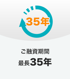| ご融資期間 | 35年以内 ※建物の経済的残存耐用年数の範囲内となります。 ※事業資金団体信用生命保険にご加入の場合は、保険期間内での返済となります。 |